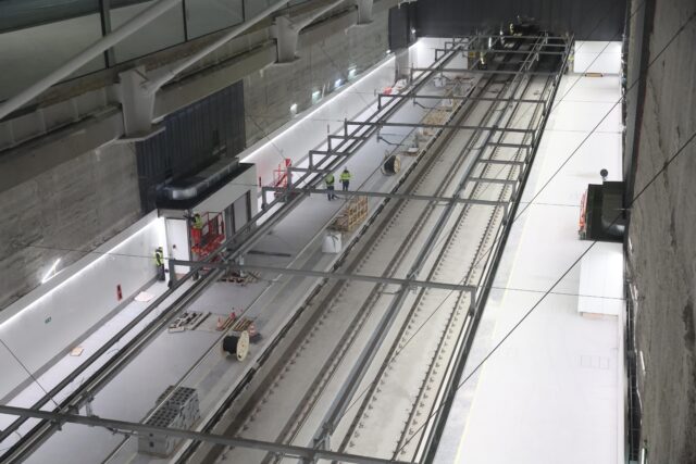 En l’àmbit del túnel, la secció interior està “completament finalitzada”, mentre que s’ultimen les instal·lacions elèctriques, de ventilació, il·luminació i seguretat contra incendis. A les estacions subterrànies, Adif ha avançat en la construcció d’andanes, vestíbuls, nuclis de comunicació vertical i espais tècnics.