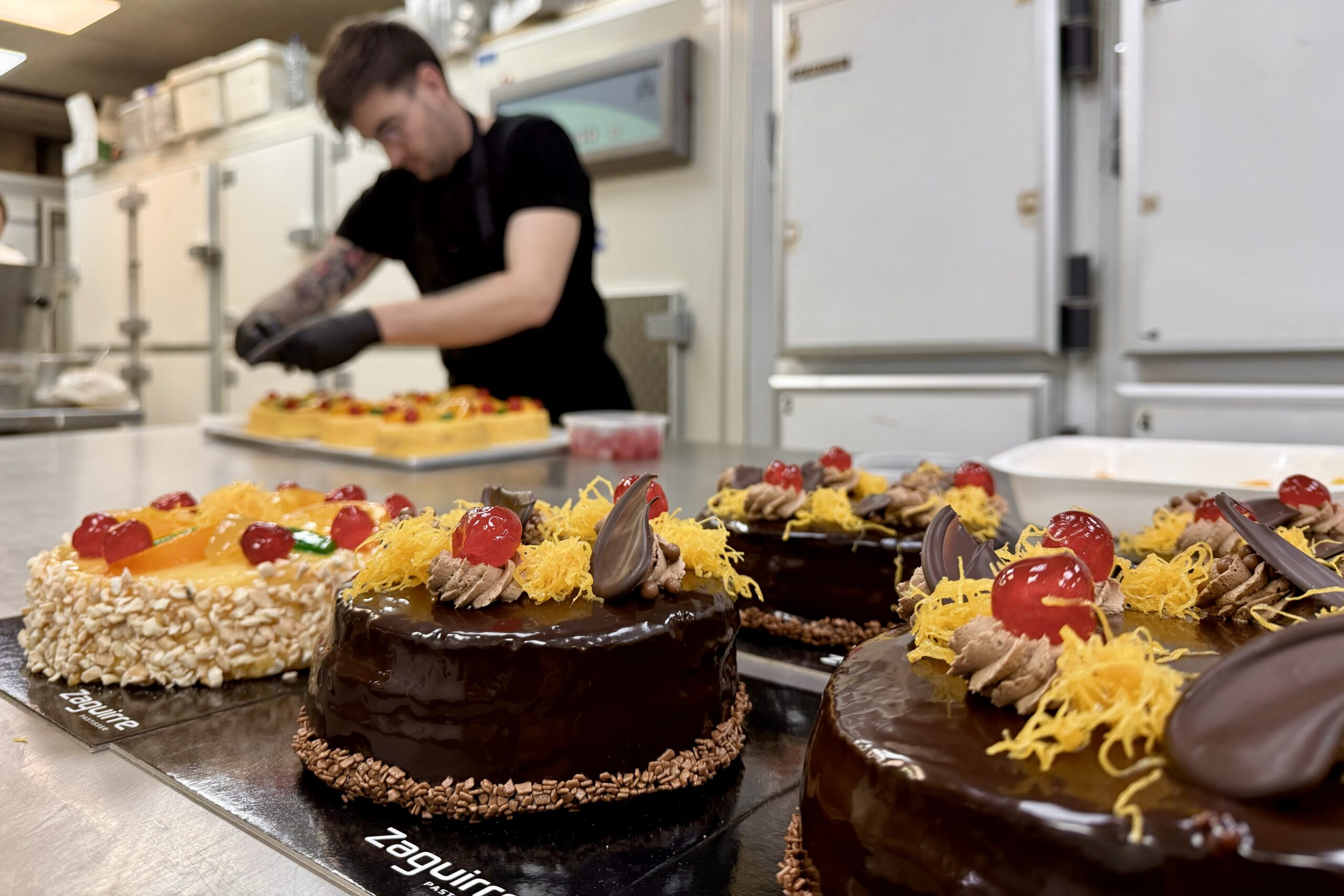 Figures a banda, els pastissos són els que omplen les taules i el pap, i el de fuita confitada segueix sent el preferit, amb pa de pessic, una mica de melmelada i llema per sobre, coronat amb un ou de xocolata. “El segueixen els de mantega, tipus Sara, que també es ven moltíssim, i clàssics com poden ser la de nata i trufa o la de tot xocolata”, ha apuntat Zaguirre.