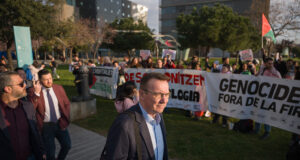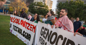 Protesta a les portes del MWC contra la vulneració dels drets...